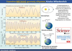 Εικόνα 1. εκκεντρότητα, αξονική απόκλιση και η μετάπτωση των τροπικών και εαρινών ισημεριών, κύκλοι Milancivitch, που δημιουργούν κλιματικές αλλαγές κάθε 120000 χρόνια, κάθε 40000 χρόνια και κάθε 20000 χρόνια αντιστοίχως, Σταύρος Αλεξανδρής, 2019.