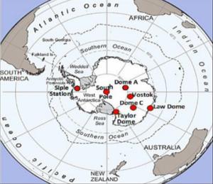 Εικόνα 2. Μερικές τοποθεσίες από τις παγοκολώνες που λήφθηκαν από τον Νότιο Πόλο και που φυλάγονται σε ειδικές αποθήκες του Πανεπιστημίου ΟHIO, USA