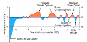 Από το 1350 μ.Χ. έως το 1800 μ.Χ. είχαμε την μικρή παγετώδη περίοδο που κράτησε 450 χρόνια και έφερε την πανώλη στην Ευρώπη, η οποία σκότωσε 40 εκατομμύρια ανθρώπους. Αυτό αποδίδεται στην ψύξη των νερών. Οι άνθρωποι δεν μπορούσαν να πλυθούν. Ναι είχαμε κλιματικές αλλαγές που δεν οφείλονται στην διακύμανση των συγκεντρώσεων του διοξειδίου του άνθρακος στην ατμόσφαιρα. Ας σημειωθεί ότι μέχρι το 1800 μ.Χ. δεν κάναμε χρήση υδρογονανθράκων.