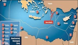 Πρώτον, να προχωρήσει άμεσα στην οριοθέτηση της Αποκλειστικής Οικονομικής Ζώνης που καθορίζει το Διεθνές Δίκαιο της Θάλασσας και μέχρι σήμερα την έχουν δημιουργήσει 140 παράκτια κράτη. Και να προχωρήσει η συμφωνία οριοθέτησης με την Κύπρο.