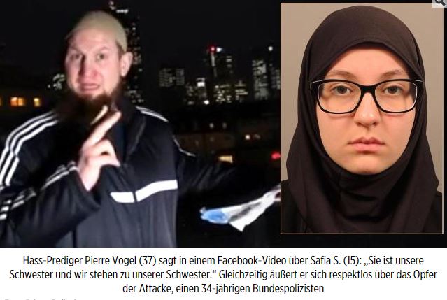 Η Γερμανική εφημερίδα Bild αναφέρει ότι η 15χρόνη Μαροκινή τζιχαντίστρια μαχαίρωσε τον αστυνομικό στο λαιμό με ένα μεγάλο μαχαίρι κουζίνας, αφήνοντάς τον να αιμορραγεί μέχρι θανάτου ..