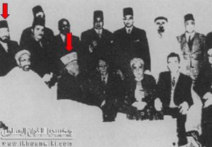 Κάτωθι του πρώτου κόκκινου βέλους εξ αριστερών και όρθιος, ο al-Banna, του δεύτερου, καθήμενος, ο al-Husseini, δεξιά του οποίου φέρεται να είναι ο πρόεδρος του μόλις ιδρυθέντος Πακιστάν (14.08.1947) Muhammad Ali Jinnah. Η συνάντηση προδήλως τοποθετείται χρονικά το αυτό έτος, ενδεχομένως την 01.05.1947, στο Κάιρο, τα συμπεράσματα της οποίας κατέληγαν κατά κύριο λόγο στην «επιταγή ανεξαρτητοποιήσεως της αραβικής Παλαιστίνης και στην ένωση των αραβικών Κυβερνήσεων εις εναντίωσιν κατά οιουδήποτε σχεδίου σκοπούντος την διαίρεση της Παλαιστίνης». Πηγή: (α) Category:Jamaat-e-Islami Pakistan – Ikhwan Wiki, The official historical encyclopedia of the Muslim Brotherhood και (β) Nussbaum, D. W., Hitler of of the Holy Land, ’48 Magazine: June, 1948, Τόμ. 2, No 6, σελ. 134, εις Oldmagazinearticles.com, σελ. 7.