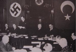H Τουρκία διαρκούντος του Β΄Π.Π. έπαιζε τον ρόλο τάχα ουδετέρας, αφού, ως ομολογεί ο ίδιος ο υπουργός περί Εξοπλιστικών του Χίτλερ Άλμπερτ Σπερ στ’απομνημονεύματά του, άνευ του τουρκικού Χρωμίου (ή Χρωμίτου), η γερμανική πολεμική μηχανή δεν θα μπορούσε ν’ανταπεξέλθει επί μακρόν στις επεκτατικές προσδοκίες του Führer.120 Πέραν τούτων, Τούρκοι ανώτατοι αξιωματικοί επεσκέπτοντο γερμανικές εγκαταστάσεις, εντός και εκτός Γερμανίας, επ’ελπίδι κυριαρχήσεως παγκοσμίως της Γερμανίας και αναβιώσεως της παλαιάς γερμανοτουρκικής συμμαχίας επί Α΄Π.Π., αιτούντες, υπό μορφή, είτε κατοχής, είτε διοικήσεως, εδάφη και νήσους της Ελλάδος, όπως η Θεσσαλονίκη, τα Δωδεκάνησα κ.α.121 Συγκεκριμένα, ο Τούρκος στρατηγός ε.α. Χουσεΐν Ερκιλέτ προέβη σε επαφές με Γερμανούς αξιωματικούς, εν’όψει συγκροτήσεως τουρκικών τμημάτων Στρατού, όπως στην Ουκρανία, όπου,  με την συνοδεία και του Τούρκου στρατηγού Αλί Ερντέν, συνάντησε τον Γερμανό στρατάρχη Gerd von Rundstedt, εν’όψει του ανωτέρω σκοπού και δη της δημιουργίας ενός απέραντου «τουρκικού» κράτους, από την Μογγολία, έως την Αδριατική, κατόπιν, δε, μετέβη στην Γερμανία, όπου συνάντησε τον Χίτλερ. Υπενθυμίζεται επίσης, ότι ο ανωτέρω Παλαιστίνιος εθνικιστής και Μουσουλμάνος ηγέτης al-Husseini επολέμησε διαρκούντος του Α΄Π.Π. στον οθωμανικό Στρατό.122