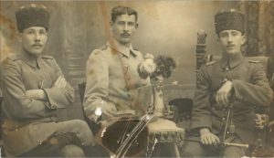 Ο al-Husseini, πρώτος εκ δεξιών, μετά των ανεψιών του Ibrahim Saeed al-Husseini και Ishaq Darwish διαρκούσης της θητείας τους στον Οθωμανικό Στρατό, 1914-1917, όταν η τότε Τουρκία υπήρξε επισήμως σύμμαχος της Γερμανίας. Σημειωτέον, ο al-Husseini υπηρετούσε τότε (1914) στην 47η Ταξιαρχία στην Σμύρνη. Πηγή: The Palestinian Museum Digital Archive.
