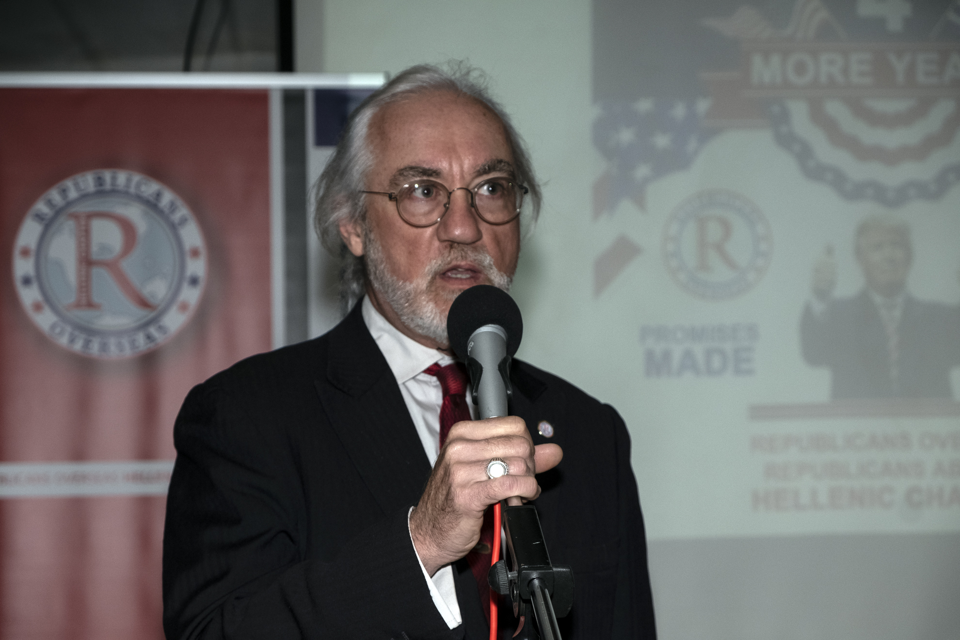 Όμως η δράση αυτών, αλλά και άλλων επίδοξων μιμητών τους δεν τελειώνει εκεί. Γνωρίζουμε κάλλιστα ότι πολλά άτομα σε διάφορους πολιτικούς χώρους μας συκοφαντούν με αίσχιστο τρόπο σε Έλληνες πολιτικούς στο ανώτατο επίπεδο, ότι δήθεν είτε θέλουμε να ιδρύσουμε κόμμα Ρεπουμπλικανών στην Ελλάδα, είτε θέλουμε να διασπάσουμε κόμματα που εκπροσωπούνται στο Ελληνικό Κοινοβούλιο. Είμαι υποχρεωμένος να το διαψεύσω και πάλι, αλλά να σας τονίσω ότι τέτοιες συκοφαντίες έχουν στόχο την αμαύρωση του έργου μας, αλλά και την οπισθοδρόμηση των Ελληνο-Αμερικανικών σχέσεων, εκπορεύονται δε από τους εχθρούς της Ελλάδας και των ΗΠΑ που δεν βλέπουν με καλό μάτι την προσέγγιση ούτε των Κυβερνήσεών μας, ούτε των δύο υπέροχων Λαών μας.