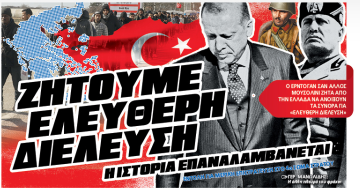 Ο Ερντογάν σαν άλλος Μουσολίνι ζητά από την Ελλάδα «ελεύθερη διέλευση»