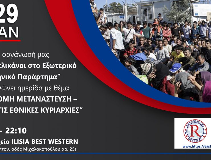 ΔΕΛΤΙΟ ΤΥΠΟΥ 22 Ιανουαρίου 2020 Η οργάνωσή μας «Ρεπουμπλικάνοι στο Εξωτερικό – Ελληνικό Παράρτημα» διοργανώνει ημερίδα για το μεταναστευτικό στην Αθήνα την Τετάρτη 29 Ιανουαρίου 2020. Ο τόπος τέλεσης της εκδήλωσης είναι…