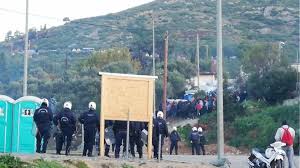 Εκεί τους περίμεναν ισχυρές αστυνομικές δυνάμεις με τις πληροφορίες να μιλούν για πετροπόλεμο από τους μετανάστες και χρήση χημικών από τους αστυνομικούς.