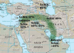 The Shiite Crescent is an imagined geopolitical entity composed of Bahrain, Iran, Iraq, Syria, and Lebanon. These countries are home to the majority of the Shiite population of the Middle East. (Afghanistan and Azerbaijan also have sizable Shiite populations outside the region, while the Houthis in Yemen are distant cousins of the Shiites.) The five countries are arranged on the map in a continuous curve that stretches from Bahrain in the southeast to Lebanon in the southwest. That curve has been called the Shiite Crescent.